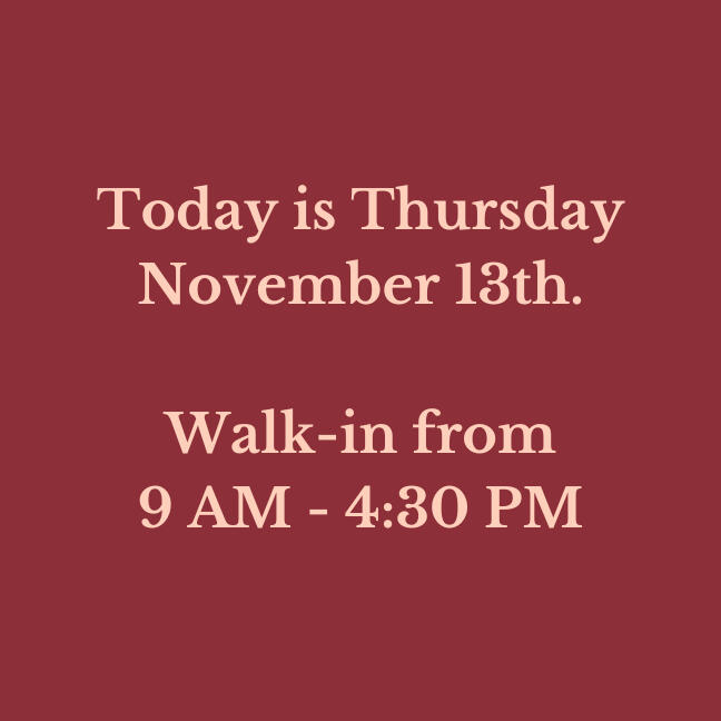 Our walk-in hours are updated daily. Please verify before making a long drive!
