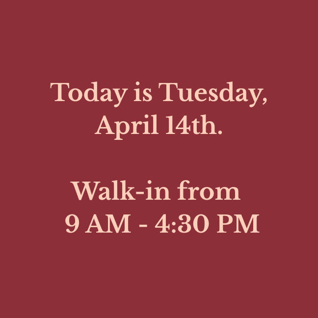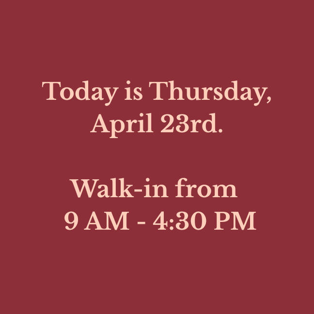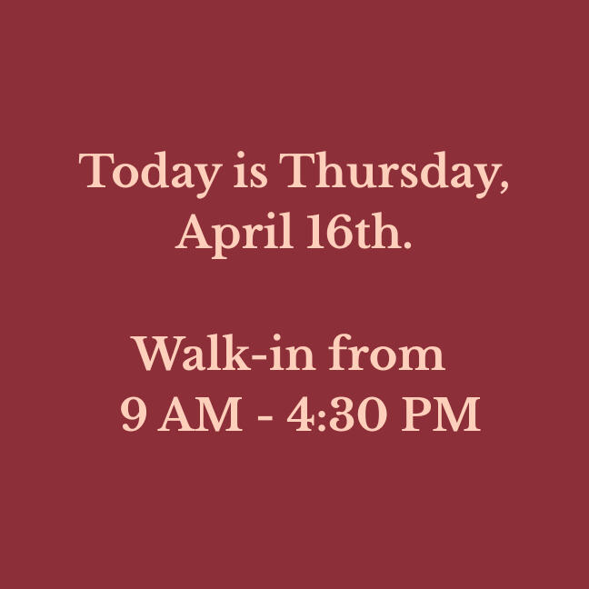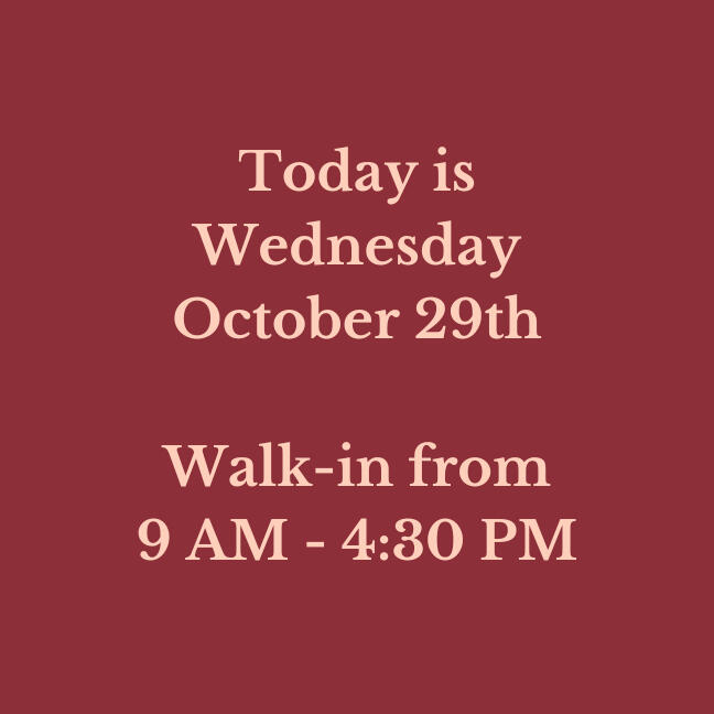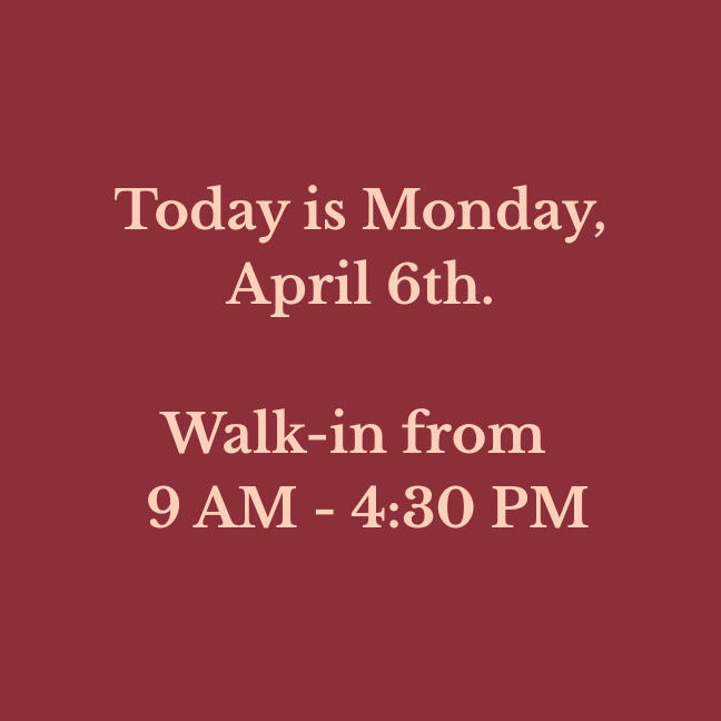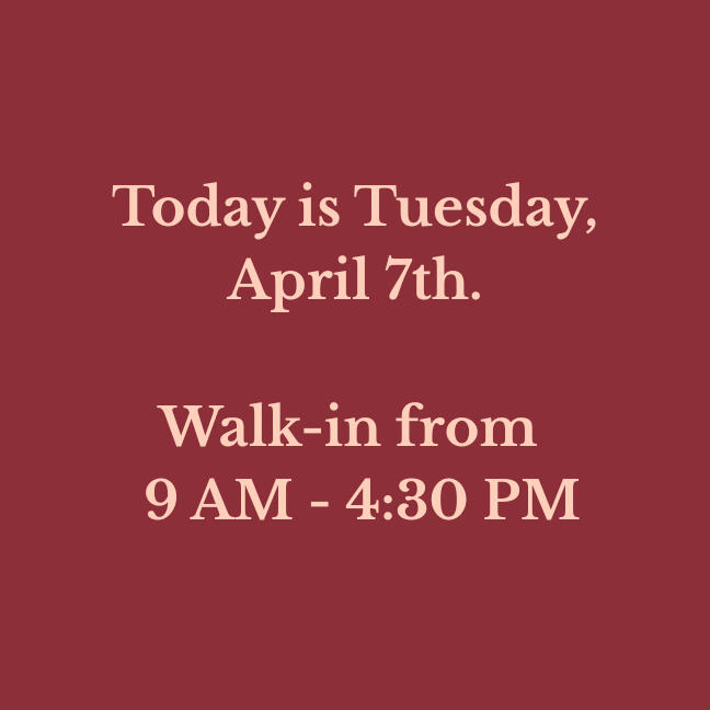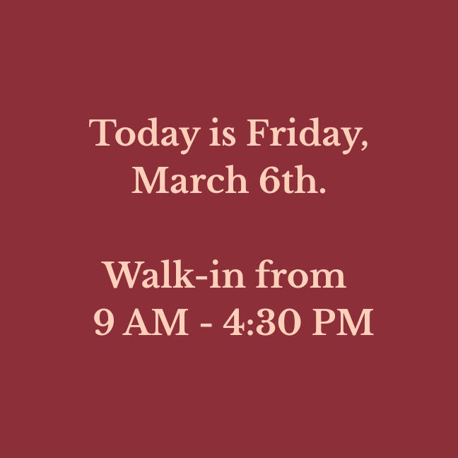 Our walk-in hours are updated daily. Please verify before making a long drive!