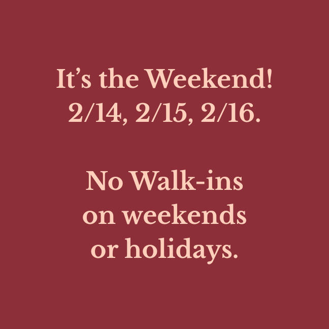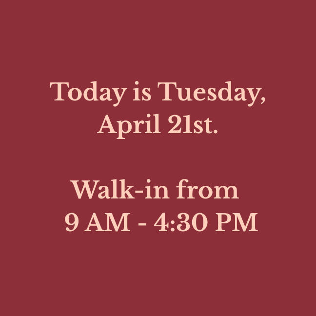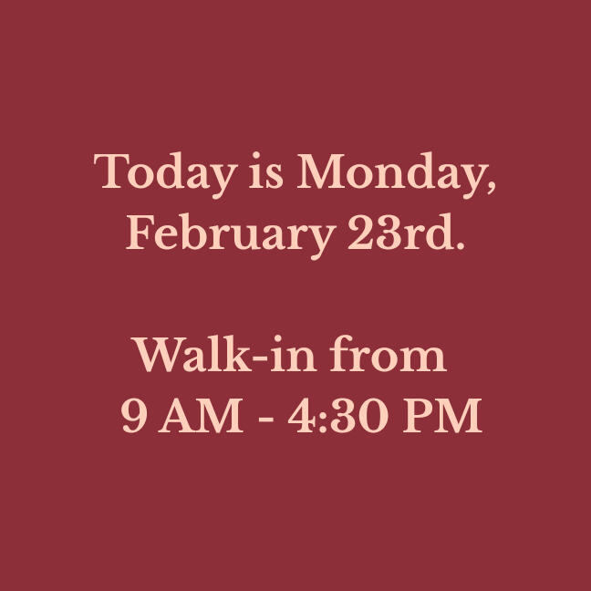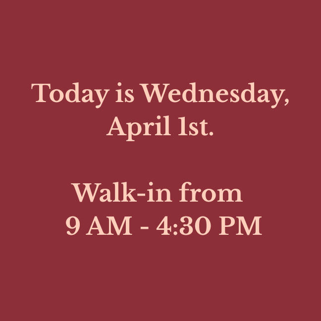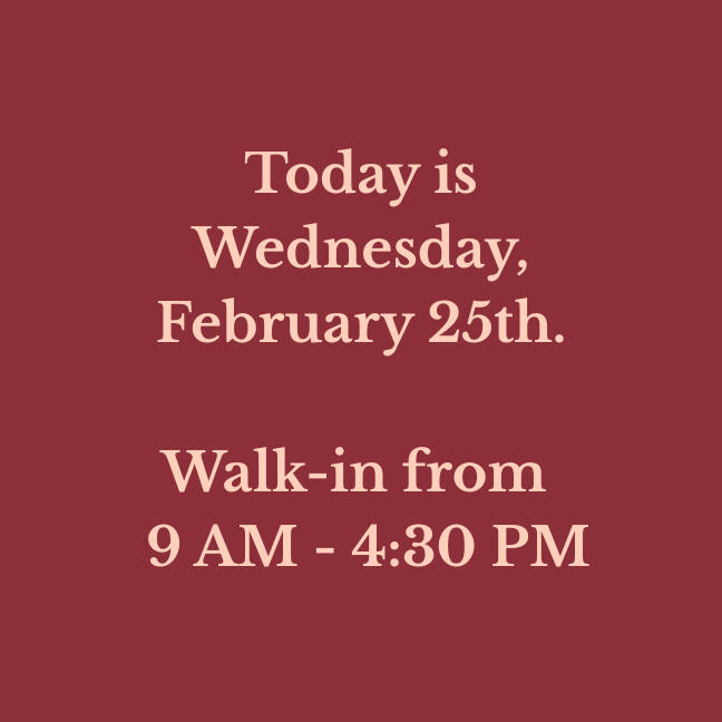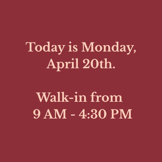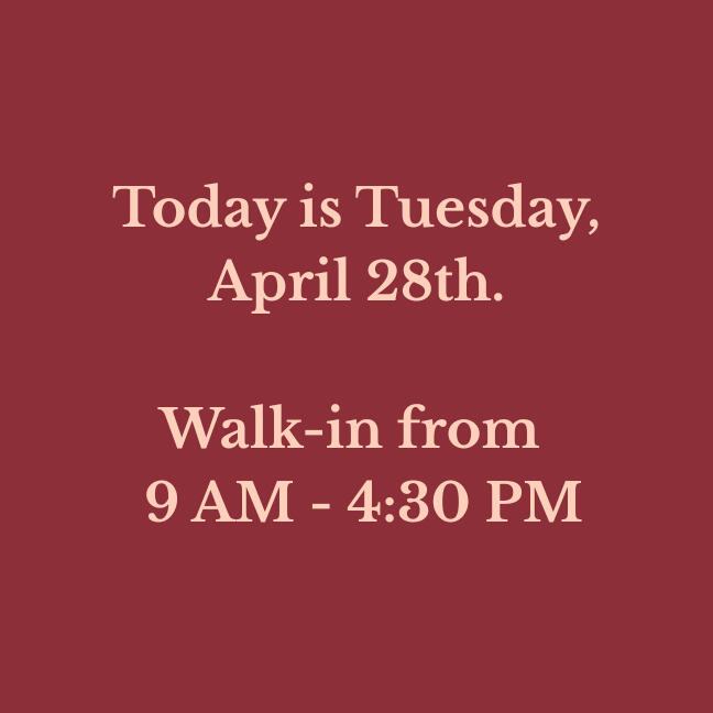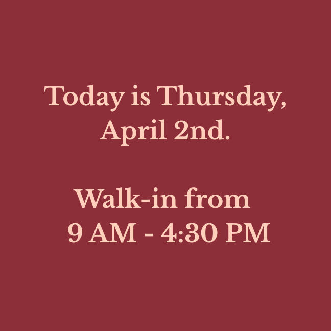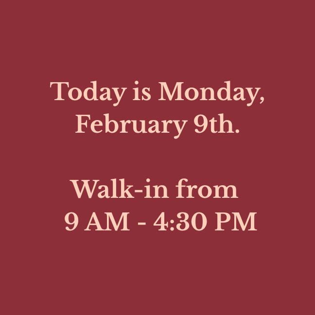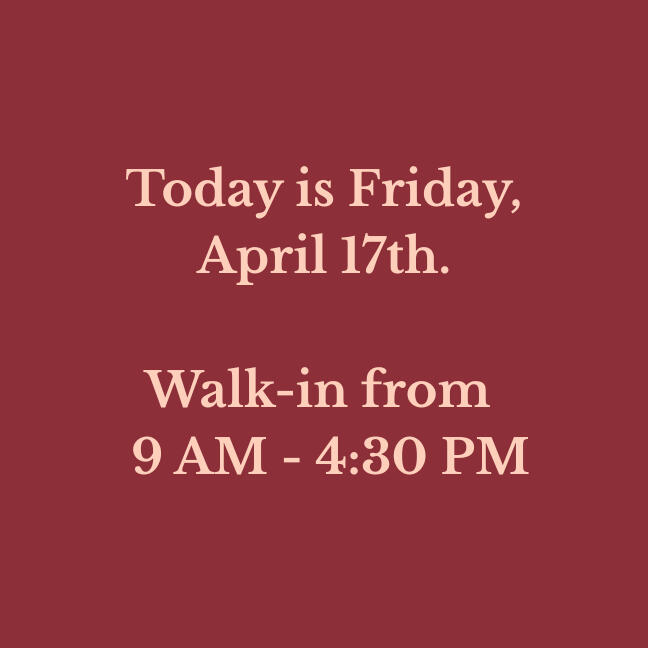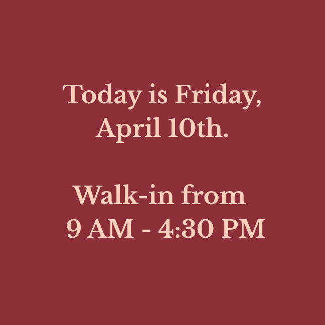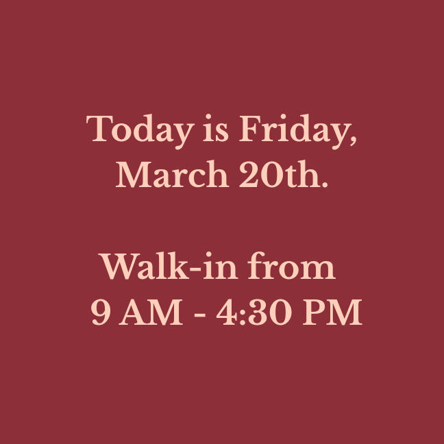 Our walk-in hours are updated daily. Please verify before making a long drive!